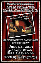 This fundraiser for Family Promise was a marvelous show for all ages! Open Door Outreach was proud to present & provide advertisement, as well as volunteers, to help in the fight against homelessness in Arkansas. Family Promise is a local organization that works daily to extinguish homelessness. Second Baptist Church, in downtown Little Rock, hosted this event to help raise funds for Family Promise. For more information on Randall Eller, visit his home page at www.randalleller.com